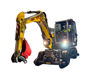 Las excavadoras de ruedas son equipos compactos, altamente maniobrables y diseñados para operar eficientemente en entornos urbanos e interurbanos.